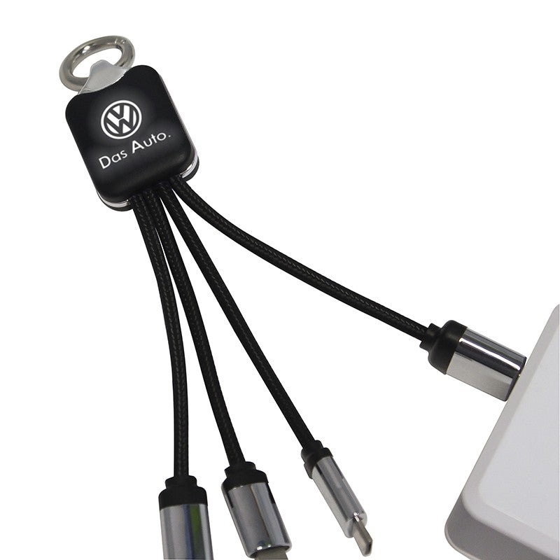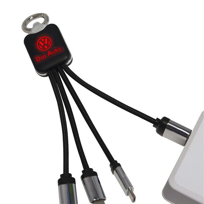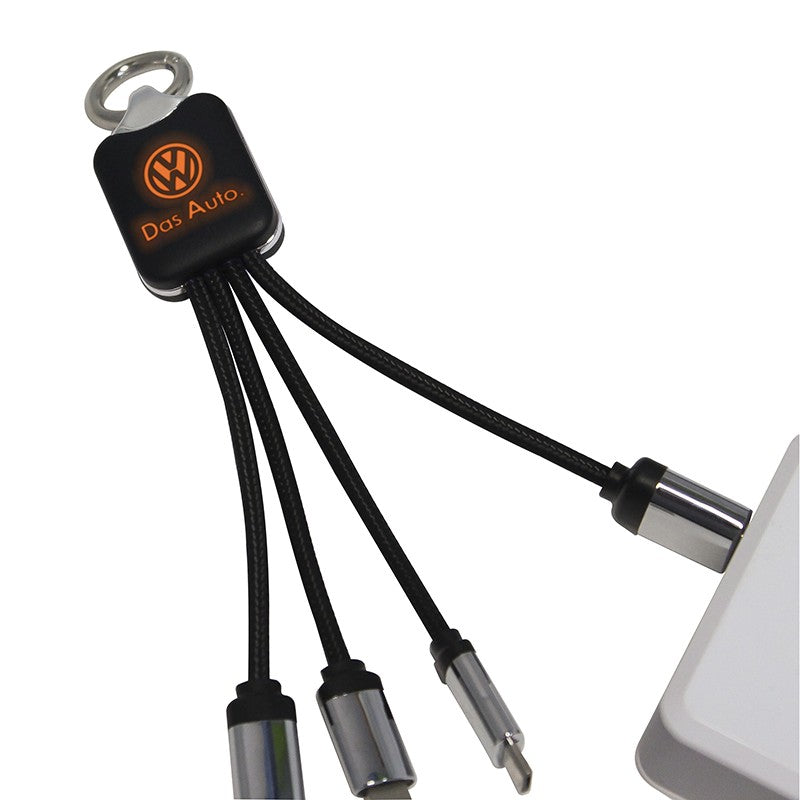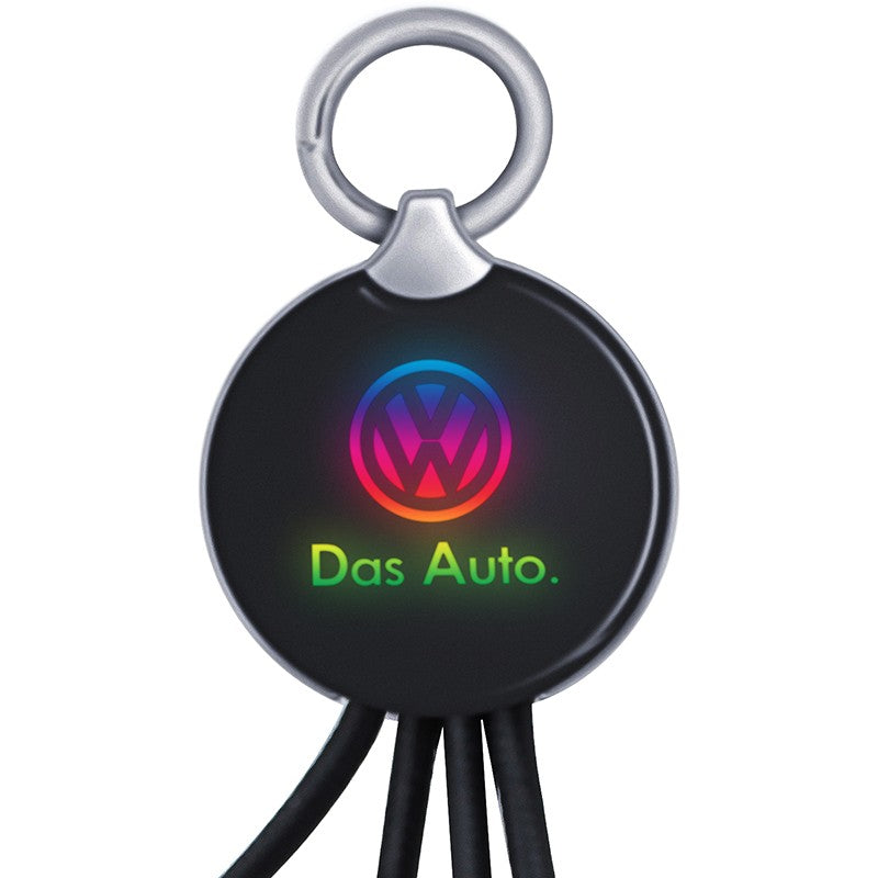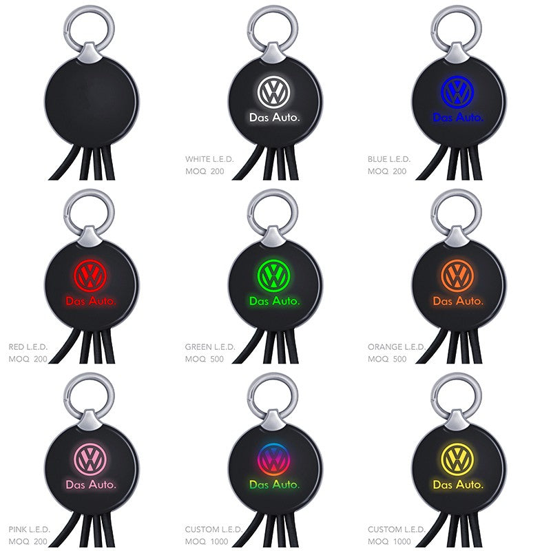 These light up charge cables will bring your logo to life! Choose from a range of light up stock colours. This unique product features anti-tangle cables including USB to Micro USB, 8 Pin (lightening) and Type-C connections. Supplied in a PVC press lock pouch and a backing card that can be fully customised.