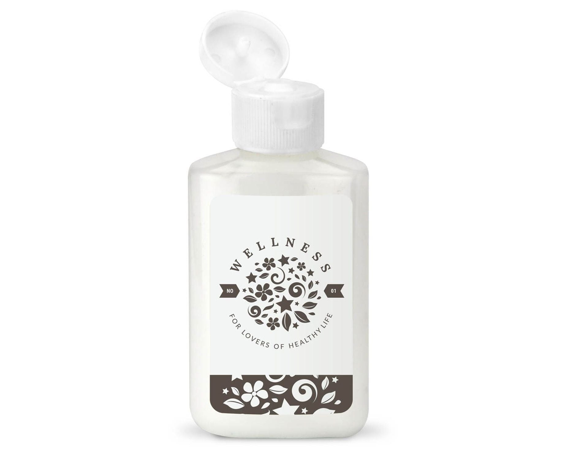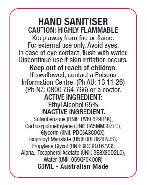 60ml bottle of clear gel hand sanitiser, protect your skin and cleanse your hands. Our hand sanitisers are alcohol based (65%) and will leave your hands feeling clean and refreshed.