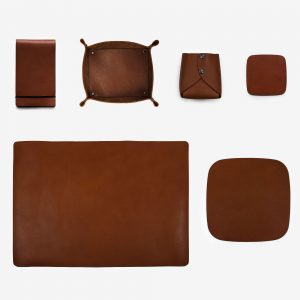 Add a touch of elegance to your workspace with our Australian made leather desk sets. Crafted from soft luxurious genuine leather, the set includes essential items to create a professional work office setting. Various foil colours available for monogramming. Choose from either Tan or Black leather.