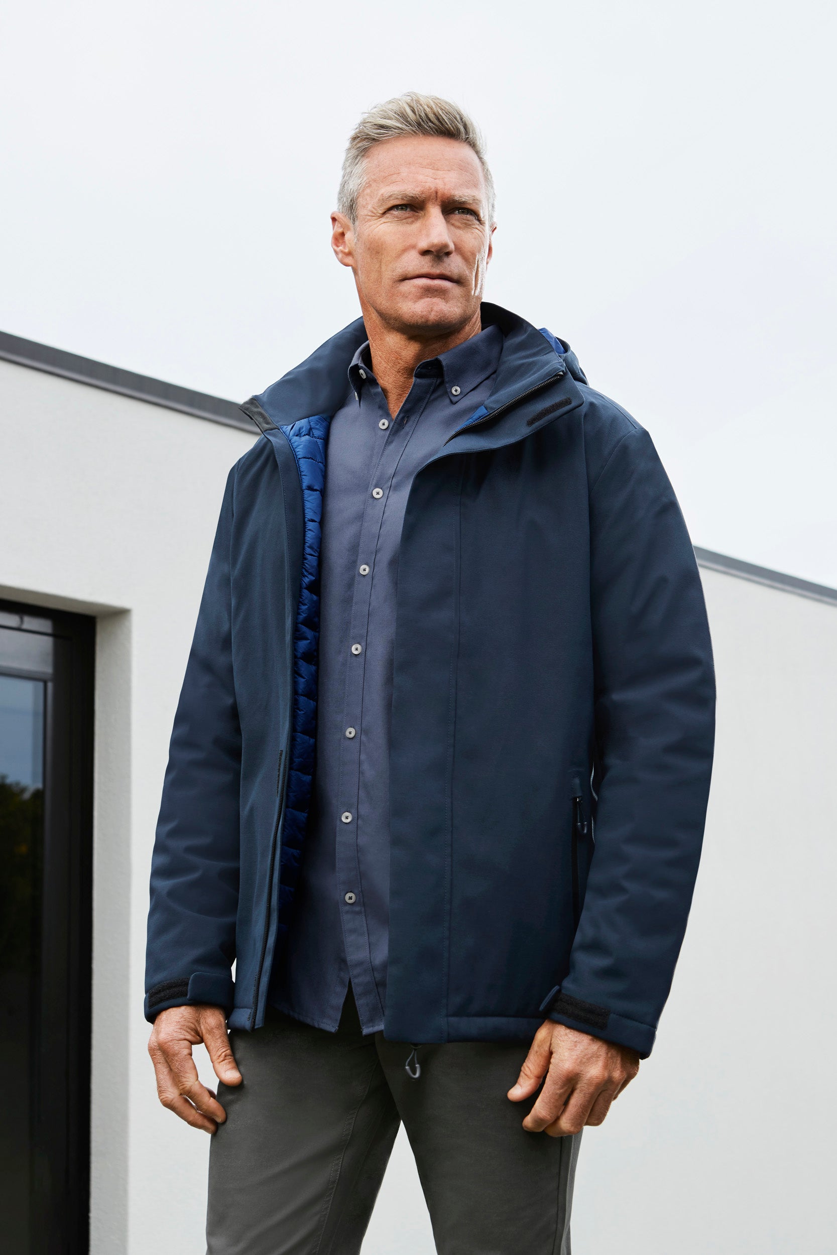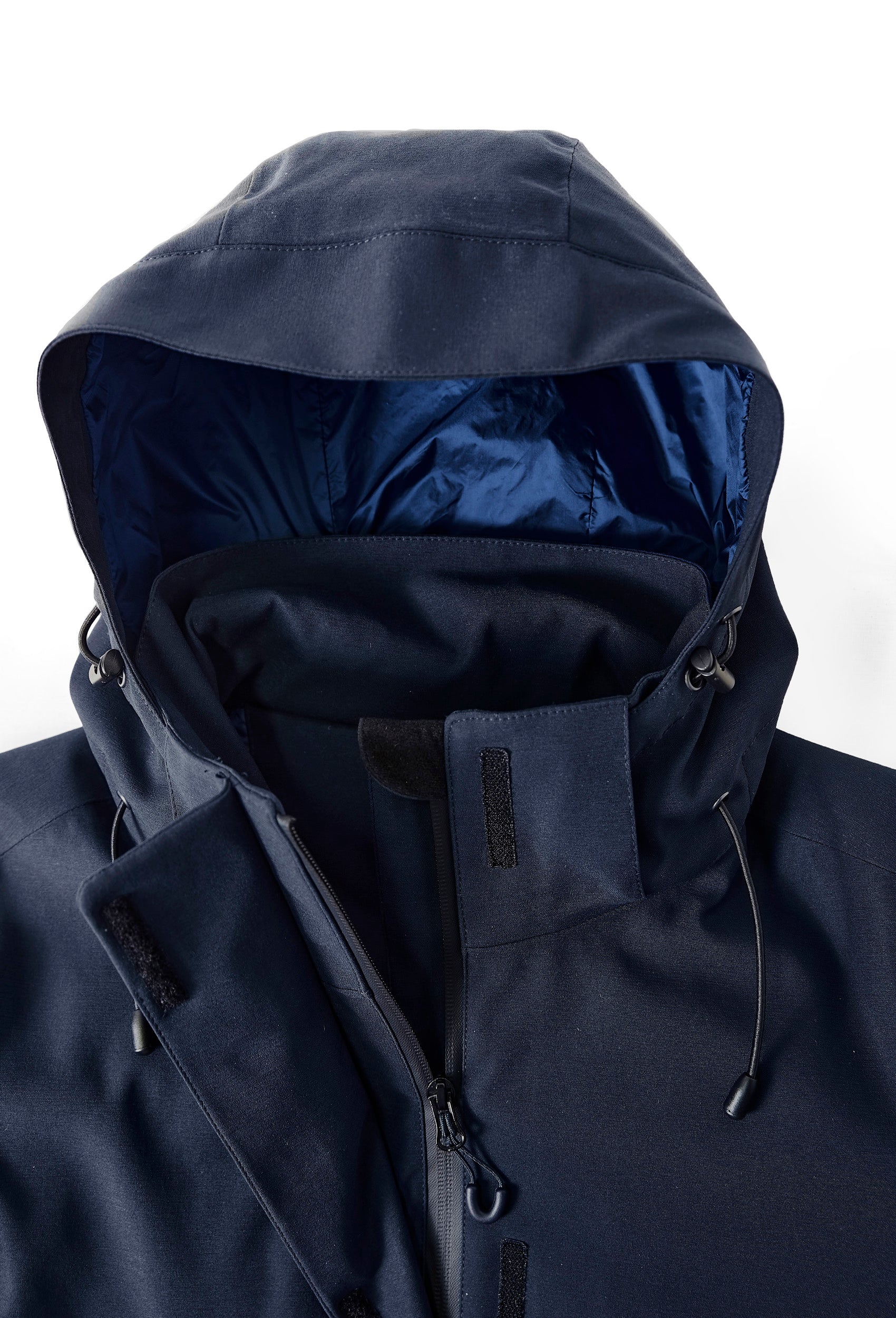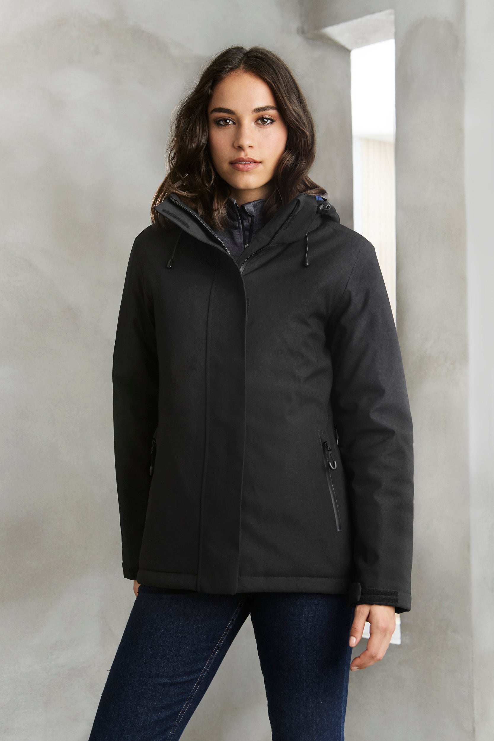 This superior waterproof protection jacket has a storm cover front and high neck collar which keeps the rain and wind out. Features include a detachable hood, zippered pockets and metallic quilted lining and insulation throughout. Available in both Men's and Ladie's sizes and either black or navy. Logos can be either printed or embroidered on several places on the jacket.
