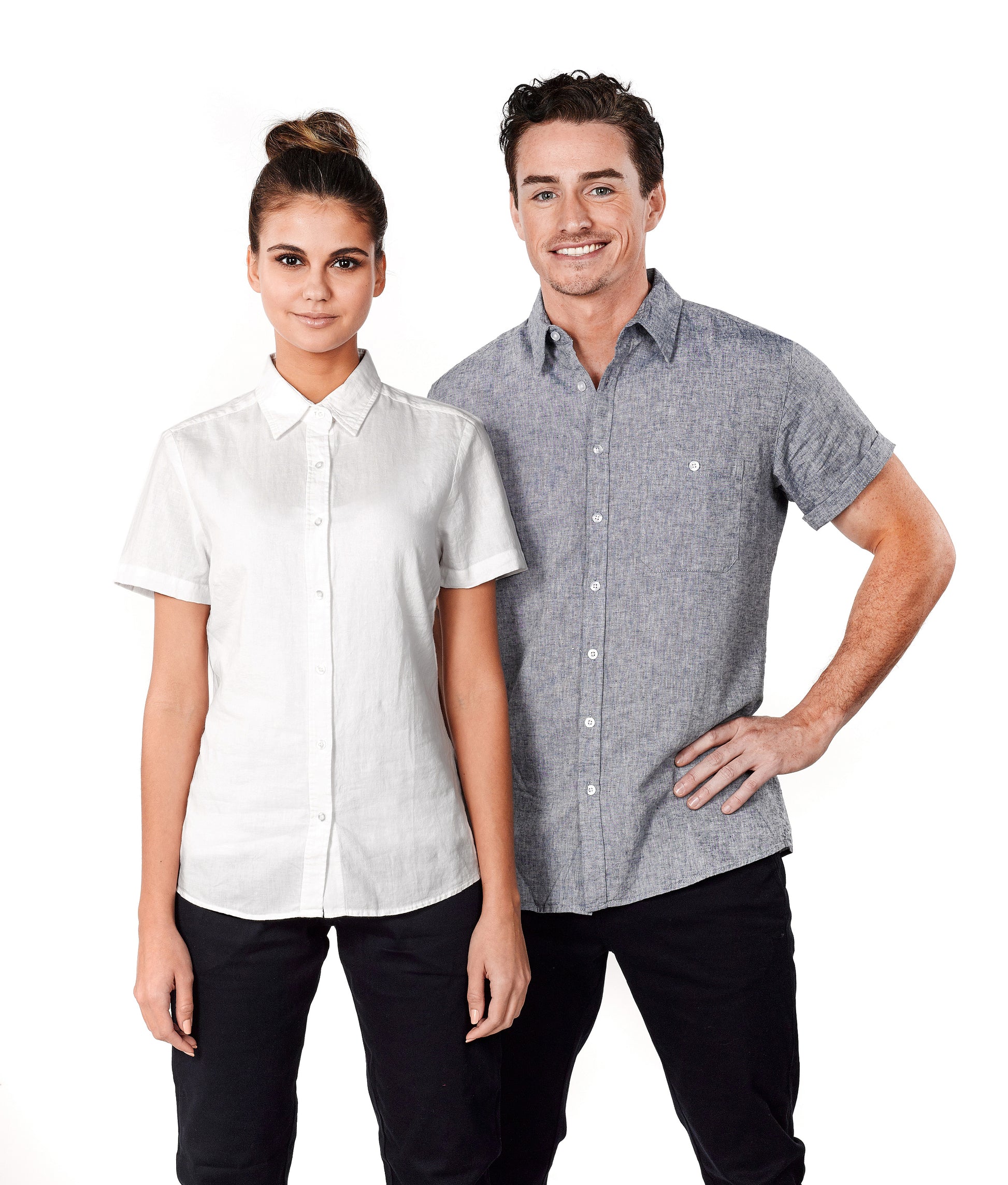 Cool and comfortable relaxed fit natural fibre shirt in 55% linen and 45% cotton mix. Available in both Men's & Women's cut, in long and short sleeves. Choice of White, Smoke Grey and French Blue.