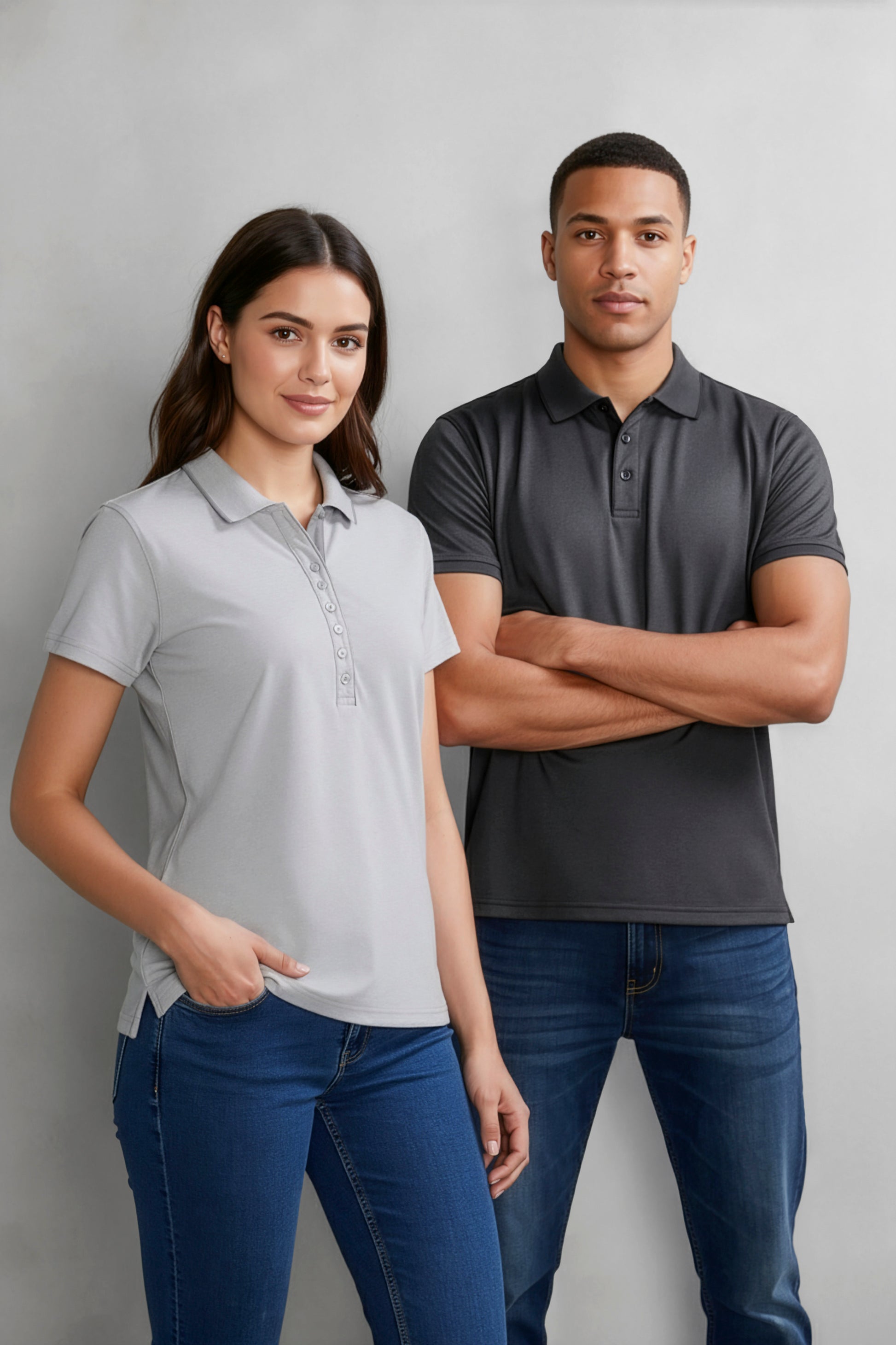 Unique fabric blend with 54% cotton-rich fabric for comfort and breathability, and viscose/polyester for silky softness and durability. Soft-feel, cross-dyed tonal fine stripe pattern polo with a sleek knitted flat jacquard collar and loose pocket. Available in both Mens and Womens sizes S - 5XL and 3 classic colours grey, black and blue.