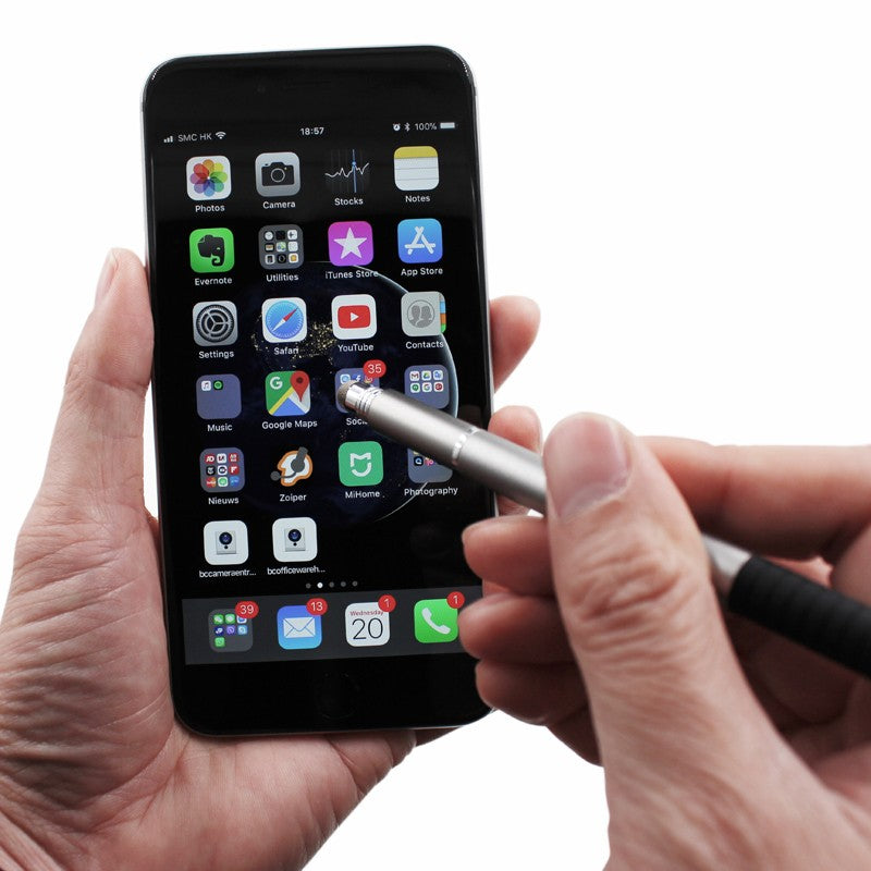 Styllo from Brand Charger delivers a seamless transition from digital to analogue in solid aluminium. Danish design and built for portability with professional appeal. Easily transform your Styllo from a smooth roller ball pen tip for writing on paper into a Capacitive mesh stylus tip for touchscreen use or a precision disk stylus for creative professionals. The Styllo works on all touchscreen devices and is always ready to go. The durable mesh tip provides a smudge-free writing and drawing experience that will last and last. No connection or batteries required.
