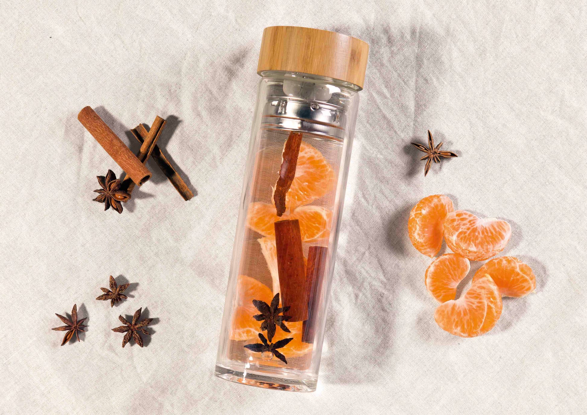 This generous 420ml double walled borosilicate glass bottle features a 2 in 1 Stainless steel (18/8) strainer and infuser basket, a bespoke natural bamboo twist on leak-proof lid. The bottle is BPA free and 100% Eco Friendly.