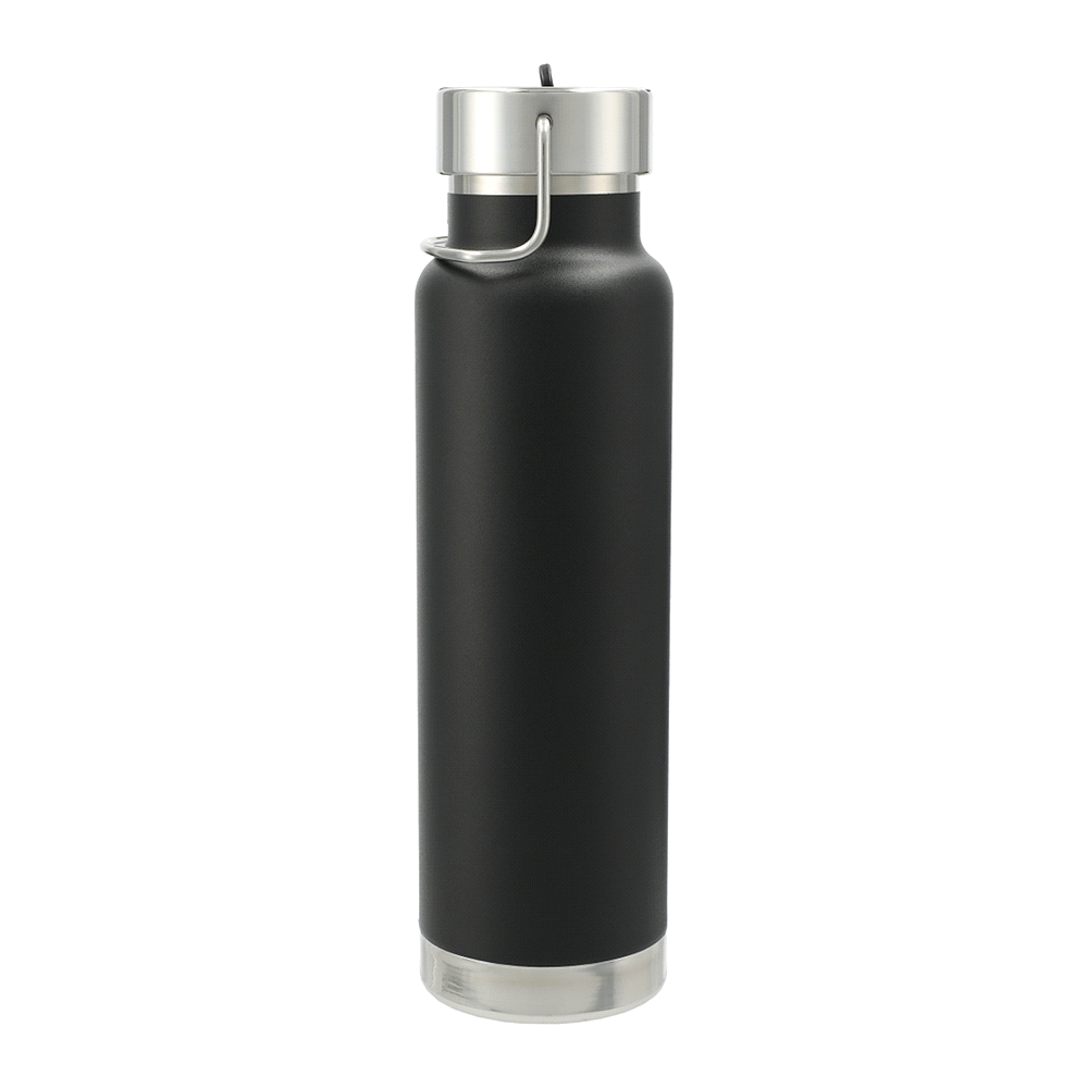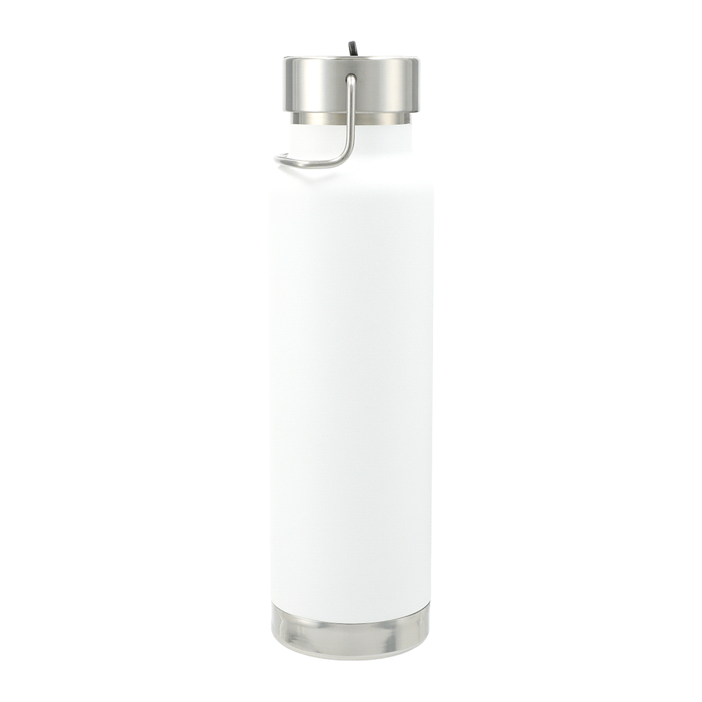 Durable, double-wall stainless steel vacuum construction with copper insulation, which allows your beverage to stay cold for up to 48 hours and hot for at least 12 hours. The construction also prevents condensation on the outside of the bottle. On-trend, durable powder coating. Stainless steel screw-on, spill resistant lid with integrated straw and durable stainless steel hand loop. Wide opening for comfortable filling and pouring. Perfect for ice cubes. Fits most standard car cup holders. 740ml.